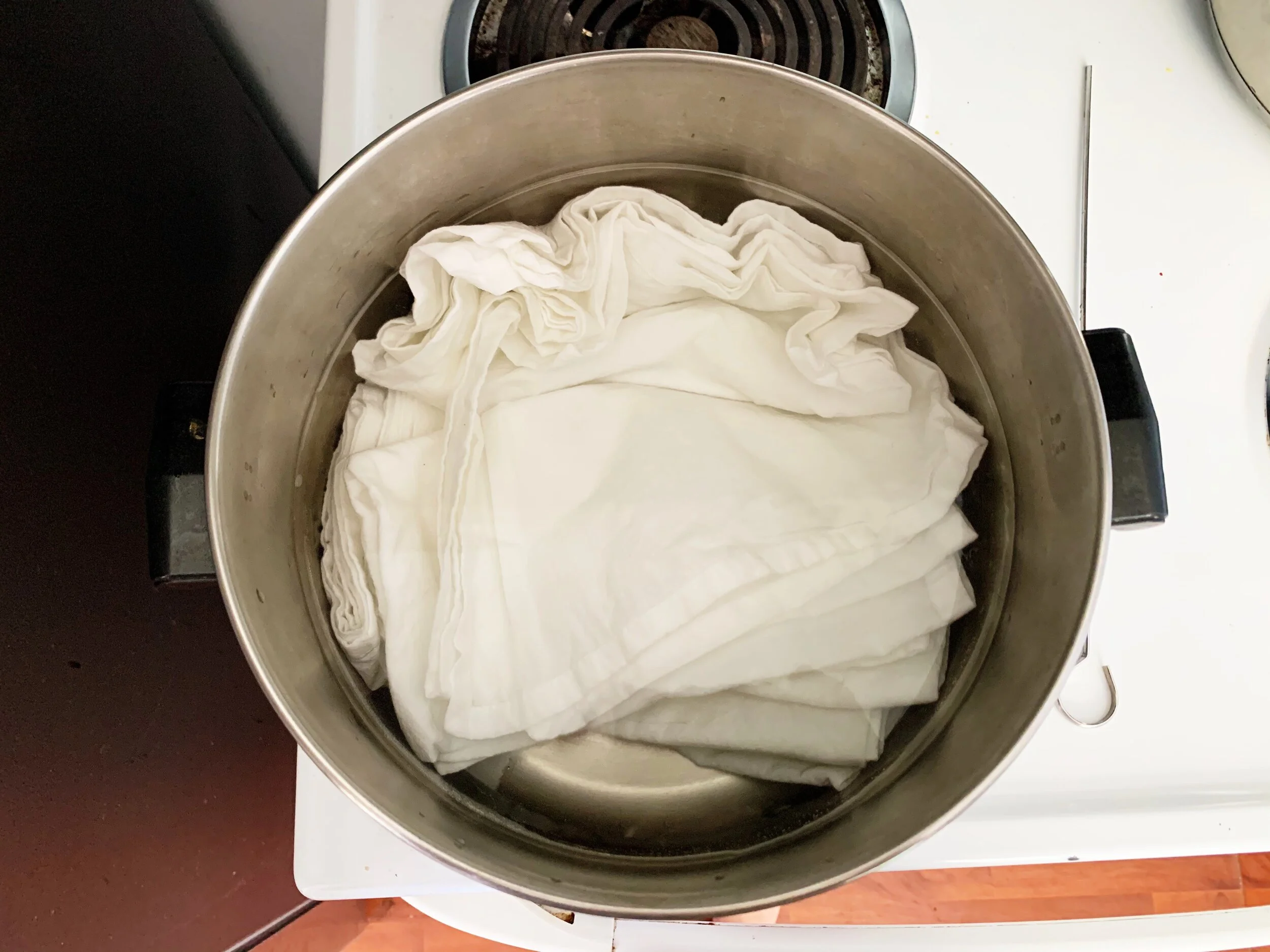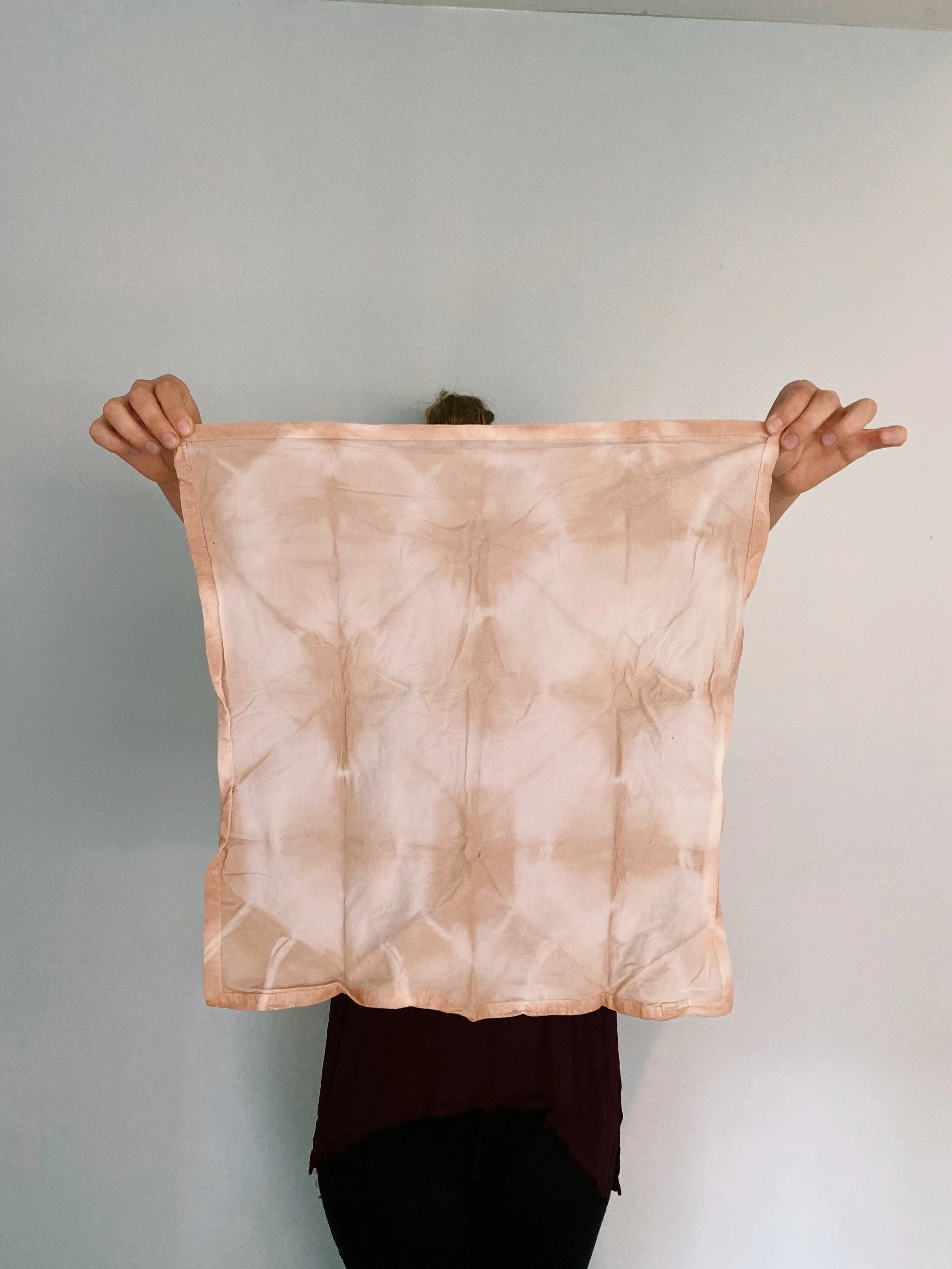 I began by soaking the fabric in a mordant. I used six 19”x19” cotton white napkins. I used Alum for the mordant.