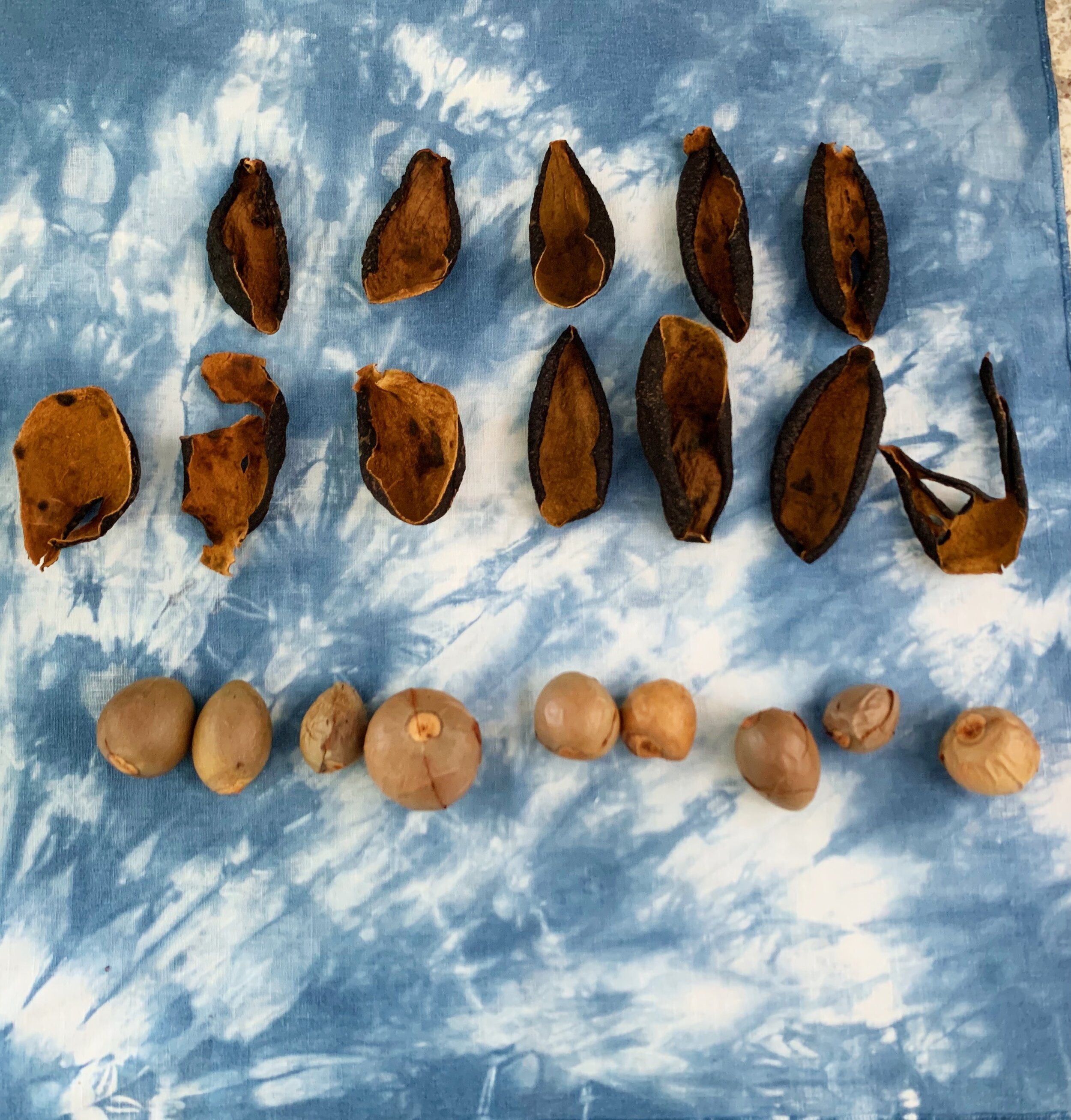 I had been wanting to dye with avocados for quite some time - I just never had enough stones and skins to do it! I saved the stones and skins from all of our avocados for about two weeks in preparation for this project. I found that the large avocados from the store seem to work better because the stones are larger, but any avocado should be fine!